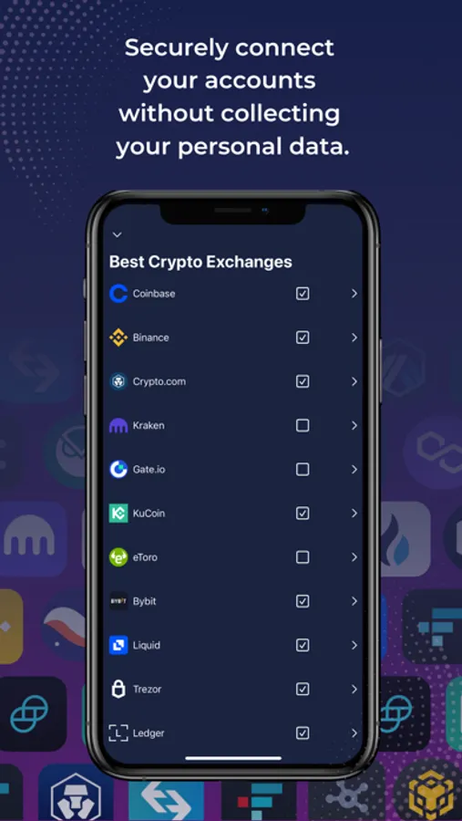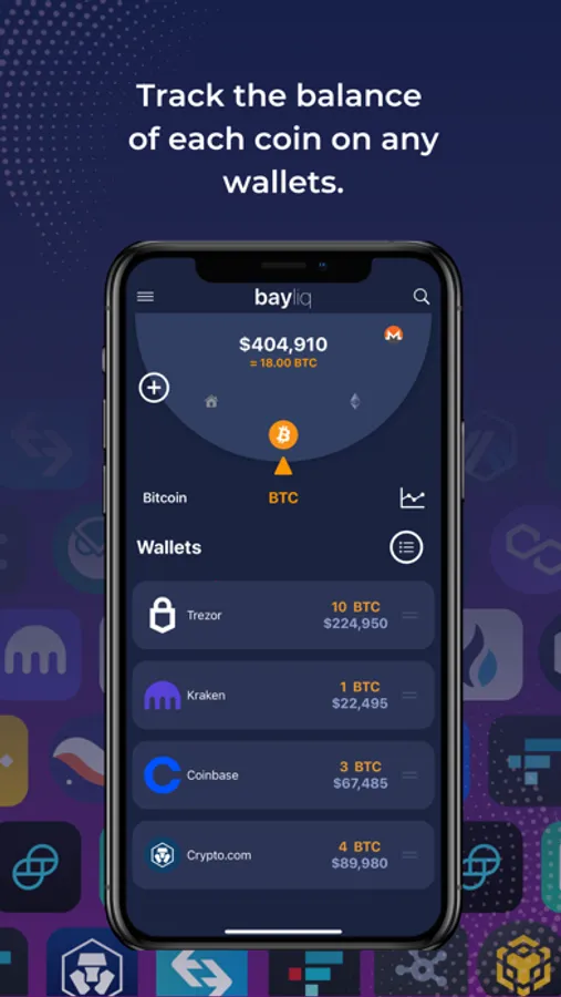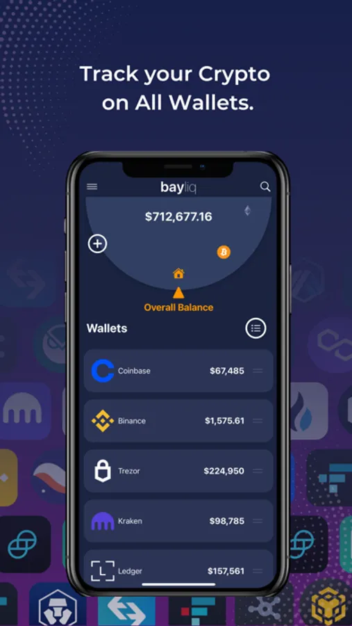 Bayliq integrates your holdings from crypto exchanges ‘cold wallets’ and cash in a single safe and secure mobile application without collecting your personal data.