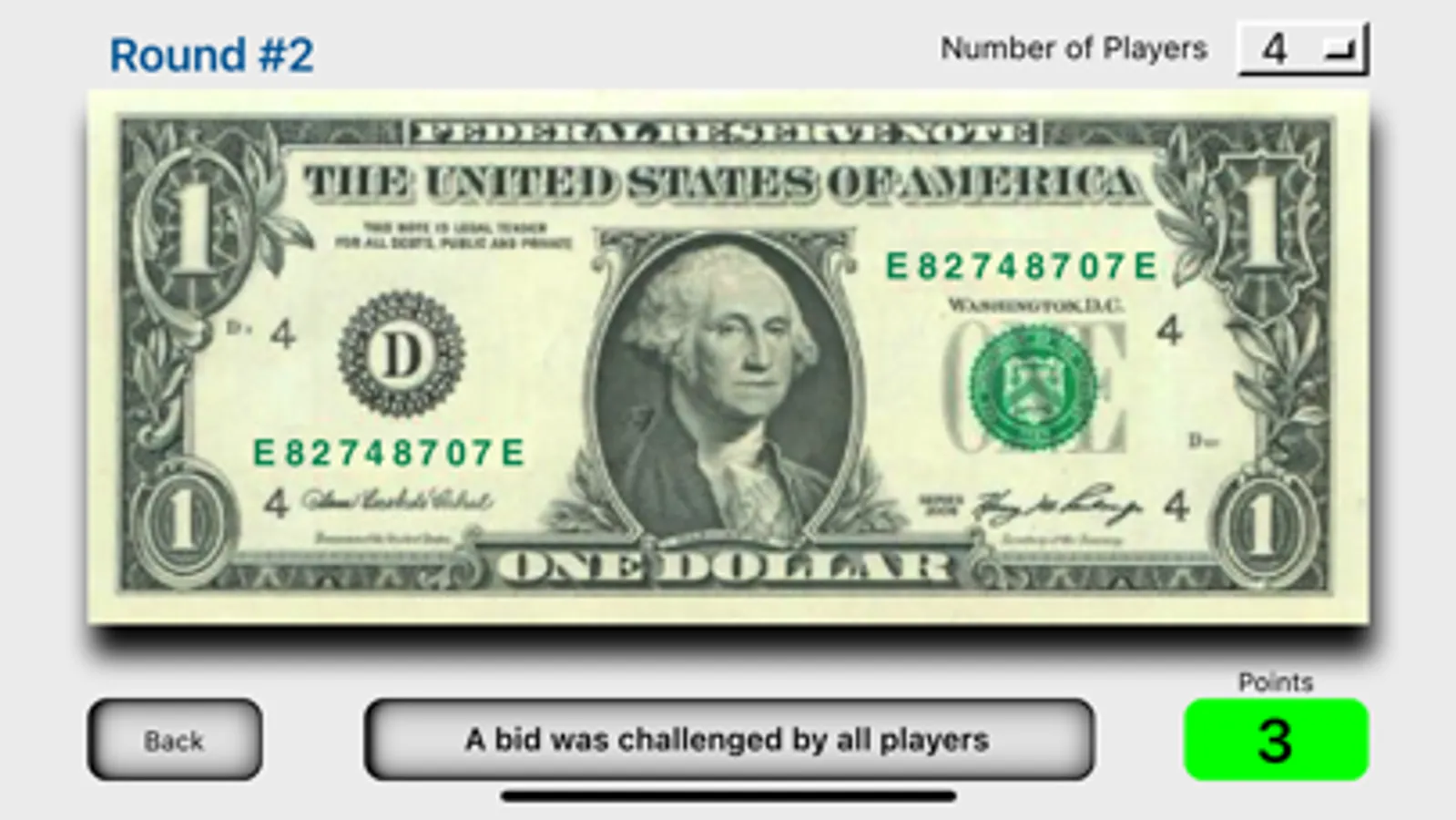 Since no bill is ever used twice during a game, the game has always been limited to the number of bills each player has. The app solves this problem by generating new bills with new unique serial numbers. The app also simplifies the score keeping with one easy dialog.