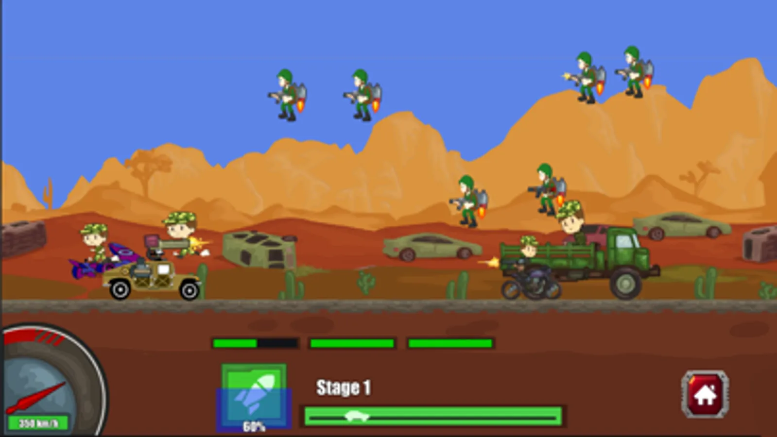 Destroy the enemy's vehicles, bikes, and fly enemies!
