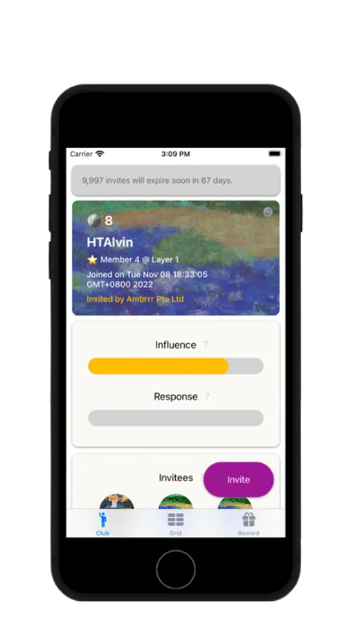 • Club: Check on user details and send 3 invites