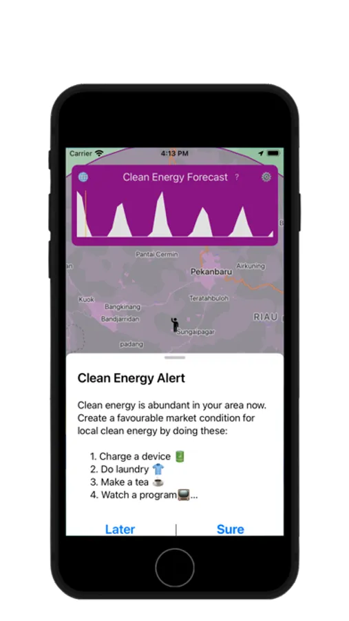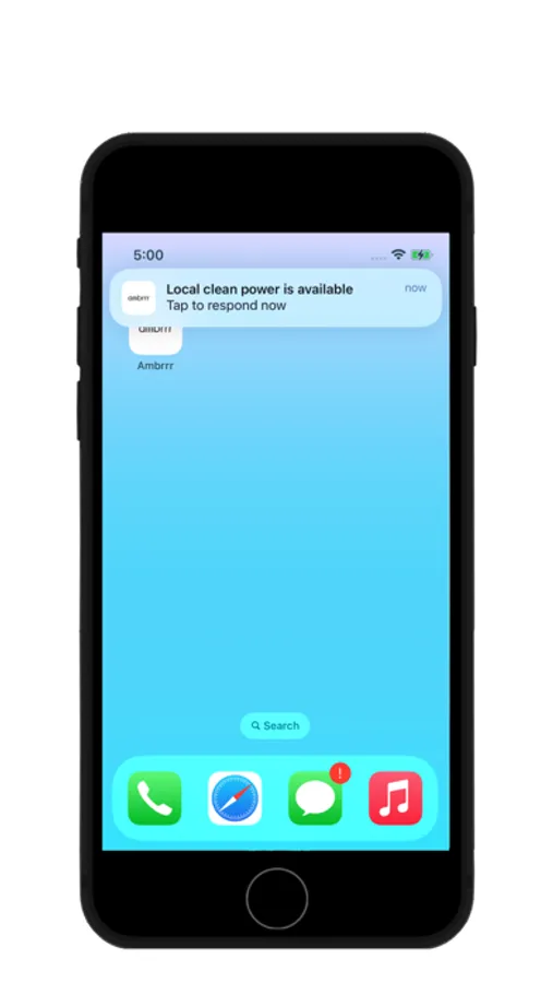 We send 3 - 5 clean energy alerts to users via push notifications every day to remind them when local clean energy is available and encourage them to utilise it. Users are rewarded for their responses.