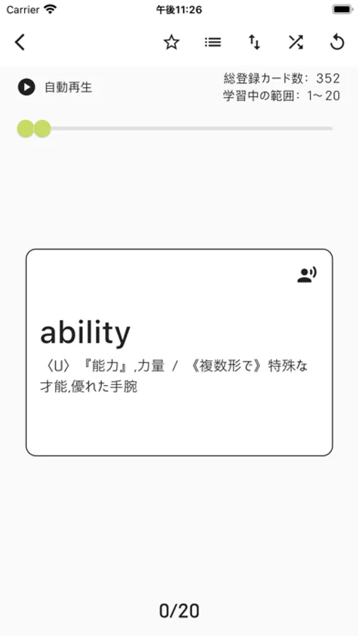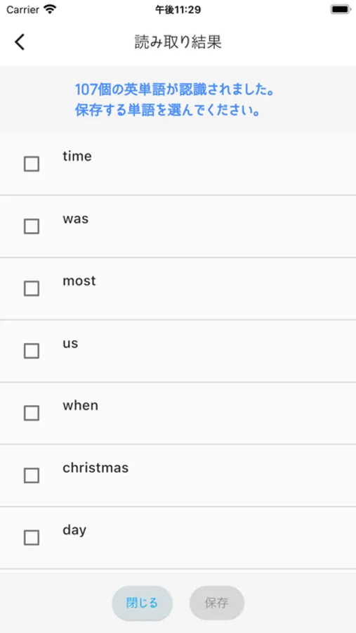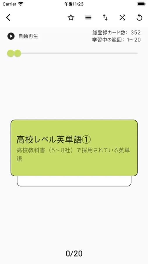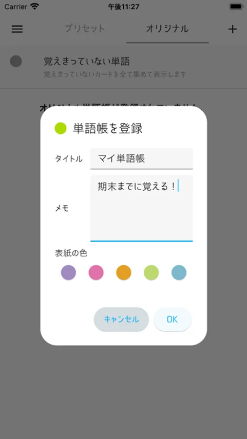 辞書から単語を選んで登録または英文・英単語を含んだ写真から英単語を抽出して登録することができて、辞書から自動的に日本語での意味を取得するので手間がかかりません。