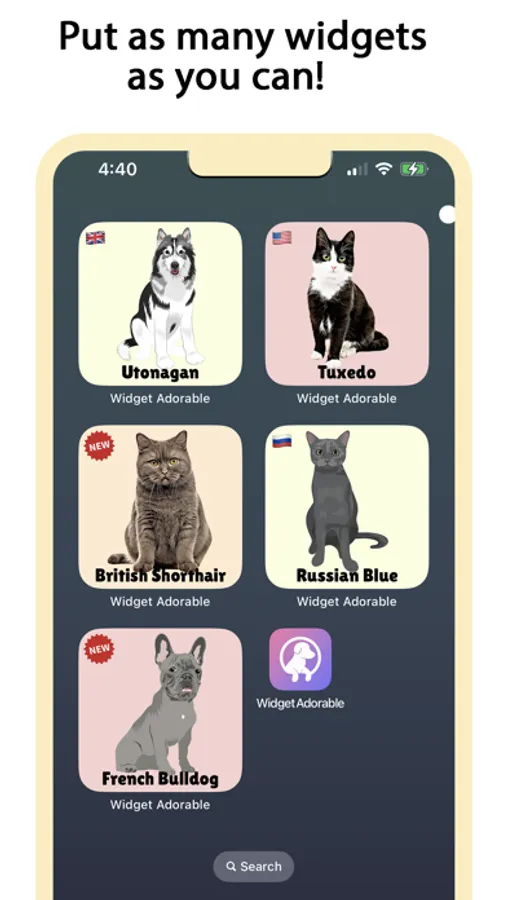 With our geogerous art illustrations of over 200 dog and cat breeds, you can now decorate your Home Screen with widgets that are adoroable, educational, and filled with fun surprises.