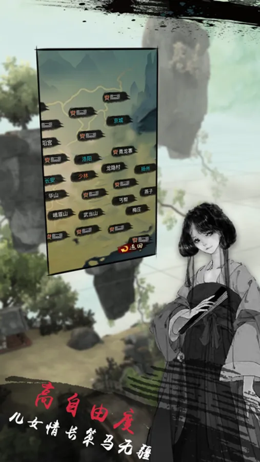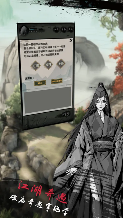 游戏的游历玩法以MUD类游戏为基础,构建一个开放的江湖。你可以摆脱主线剧情的限制,在地图中自由探索。