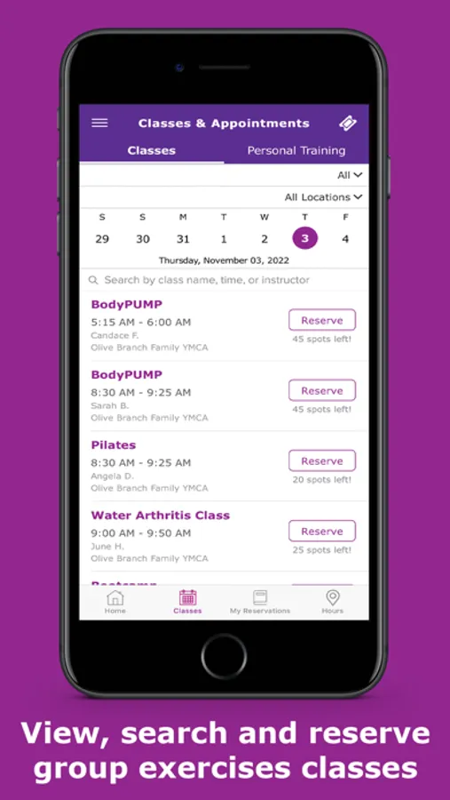View, Search, and Reserve Group Exercise Classes and YPlay