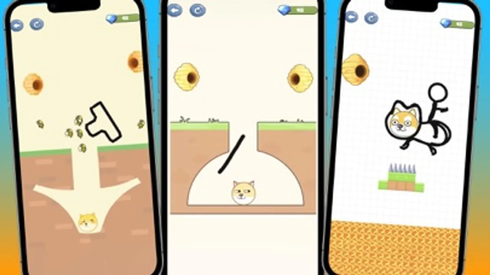 Once the line you drew is set, the bees will try to attack the dog, keep him safe for 10 seconds and you will pass the level!