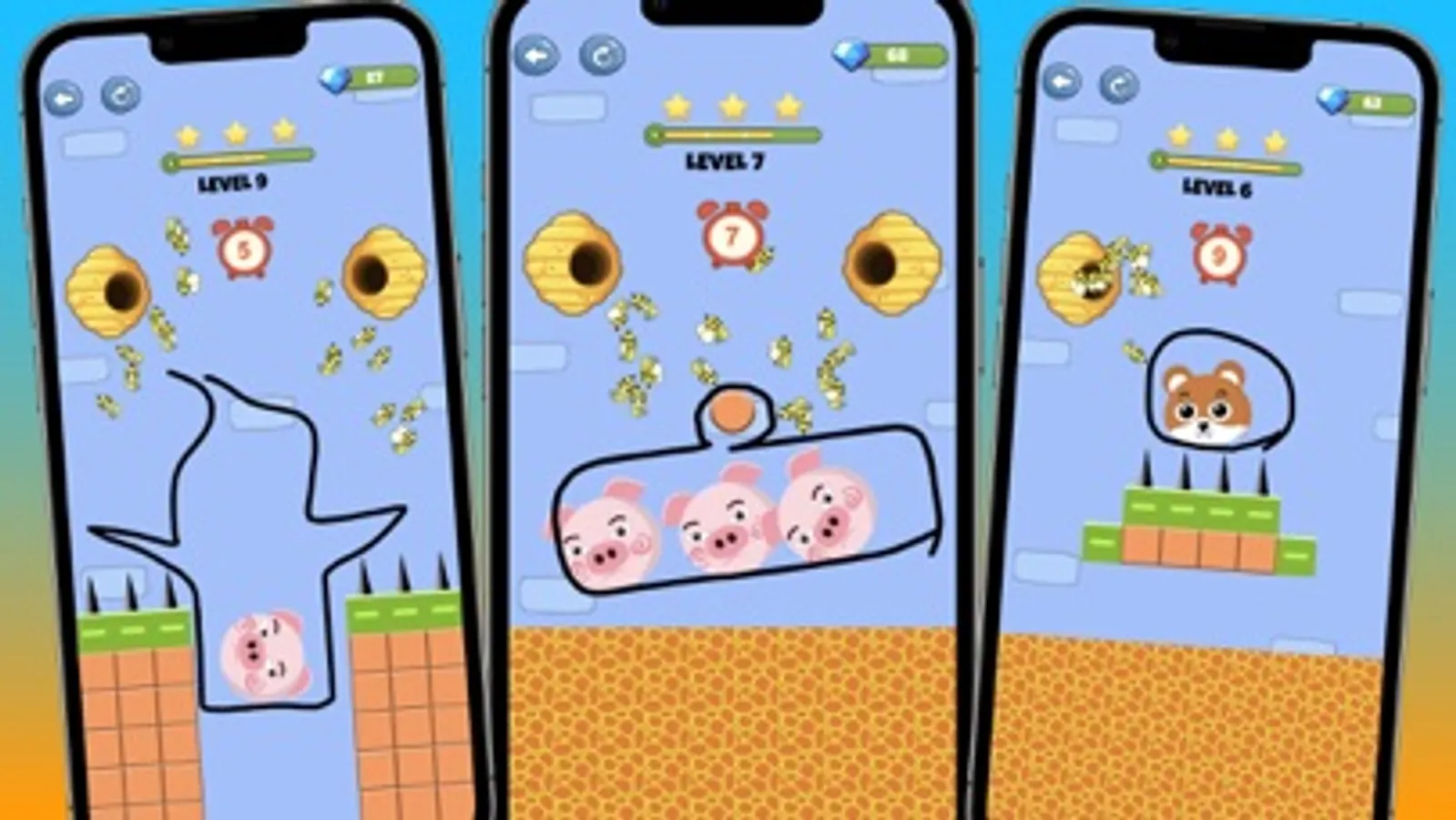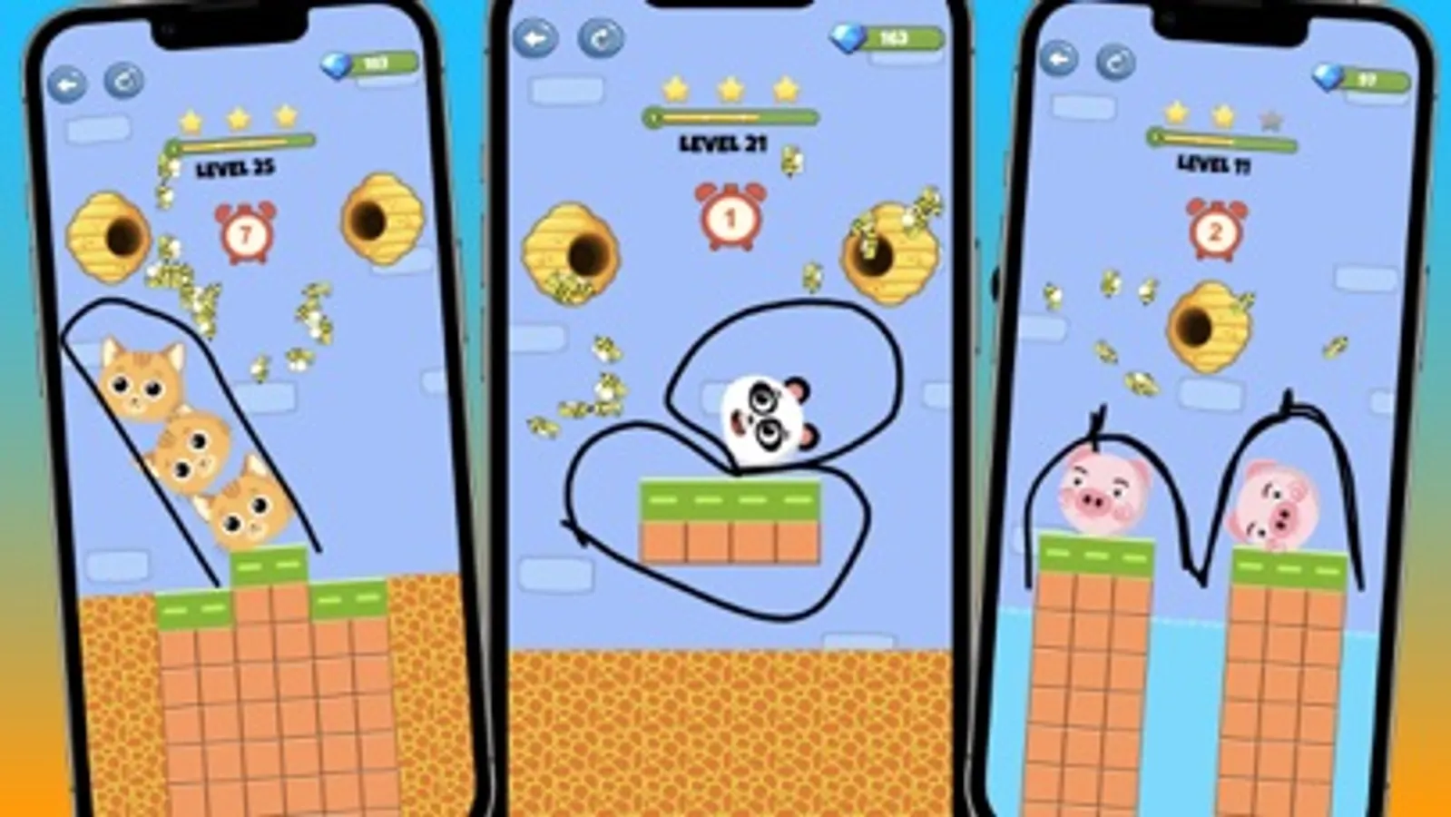 Hundreds of new levels with increasing difficulty, each time you will have to use your strategy to plan the perfect wall - after you figure out how to draw your line, simply tap and hold to create it, once you let go, the bees will come out of their hive to charge!