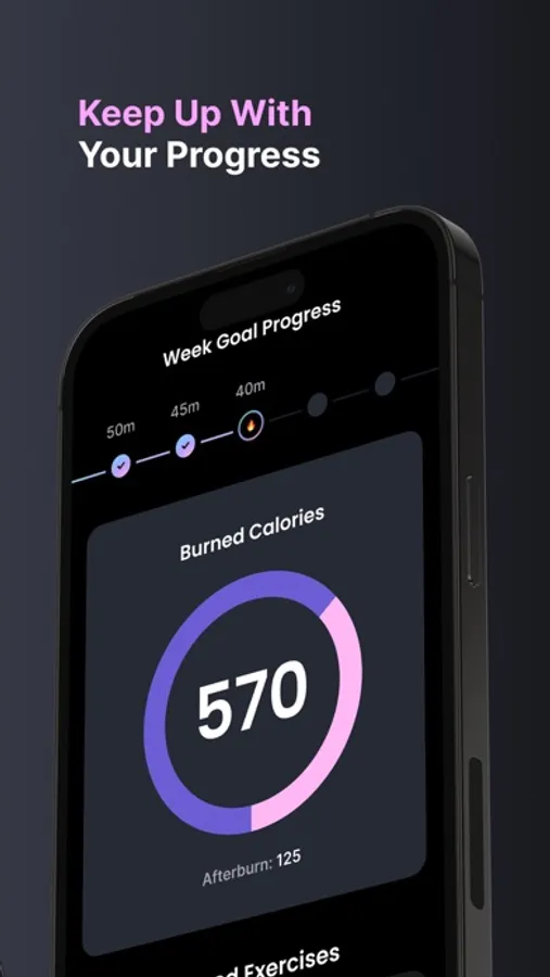 Analyze your weekly goal progress on statistical graphs created for you. Make sure your target weekly goals always exceed the expectations. Keep track of burned calories per workout. Go deeper to analyze performance for every exercise in every workout. Exercise, learn, repeat.