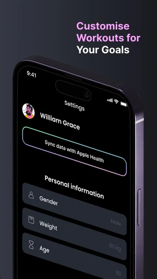 Sync your health data such as weight, age and sex to allow Fitonist to provide the workouts that suite you the most. Sync in Fitonist Settings ⇾ Personal Information.