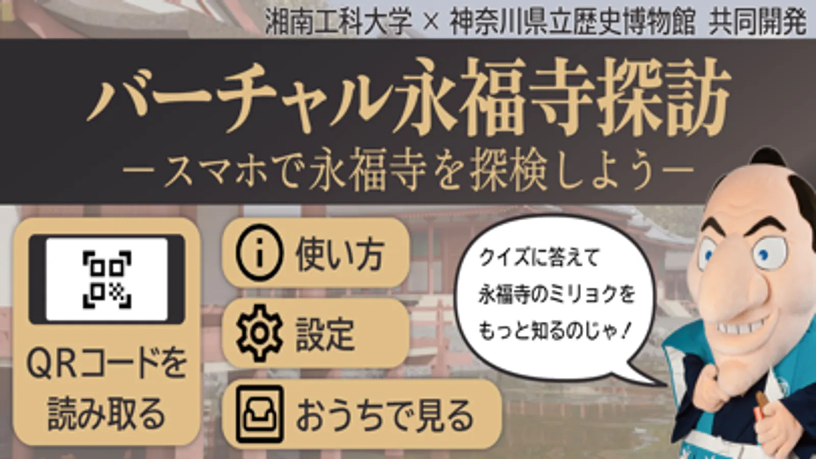 2022.10.15〜2022.11.15 神奈川県立歴史博物館で開催される「永福寺展」の展示の閲覧の際に利用するアプリです。この企画展に足を運ぶ際には、事前にこのアプリをインストールしておくことを推奨します。