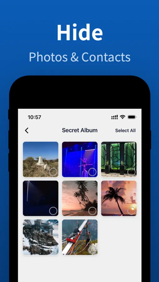 Keep your photos and contact list safe and hidden. Your data is stored in the cloud and you can access from your other devices.