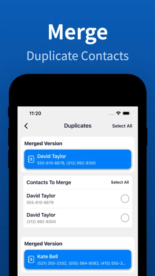 Clear duplicate and unnamed contacts quickly. You can also merge your contacts and back up all your contacts in the cloud.
