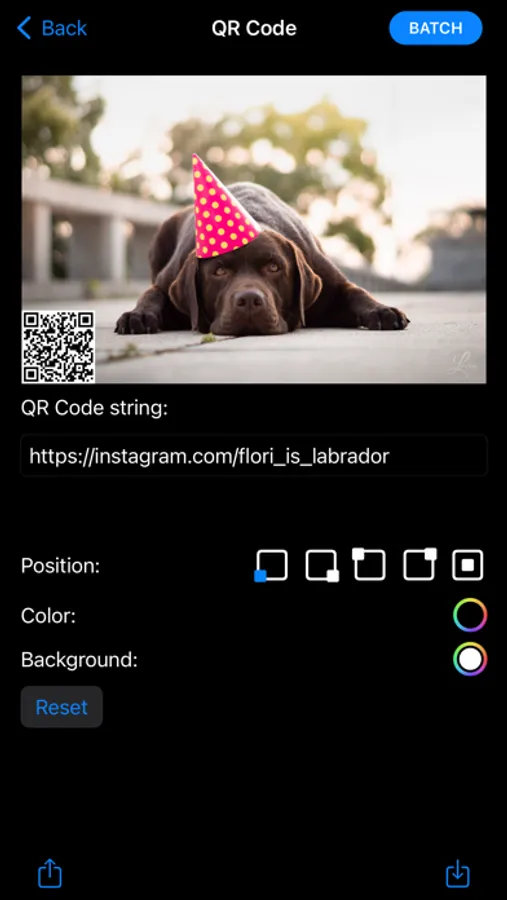 Easily create a QR code and add to photos, and choose your own QR code design.