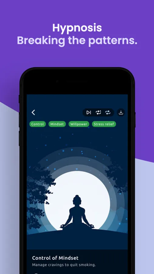 → Self-hypnosis feature to change negative attitudes towards smoking to positive thoughts and beliefs.