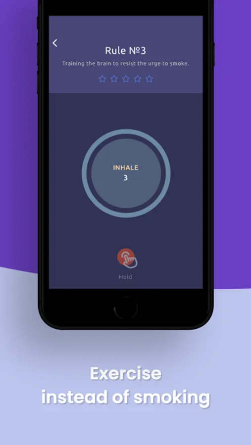 → The app's unique coach will help you on this journey. If you feel the urge to smoke, press the "craved" button and the coach will offer five exercises to help you overcome the urge. Choose a breathing exercise to calm your body and mind.