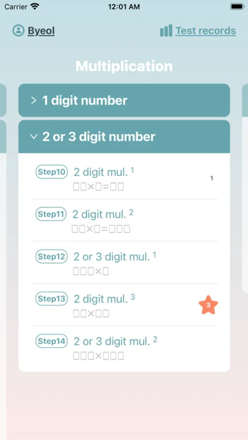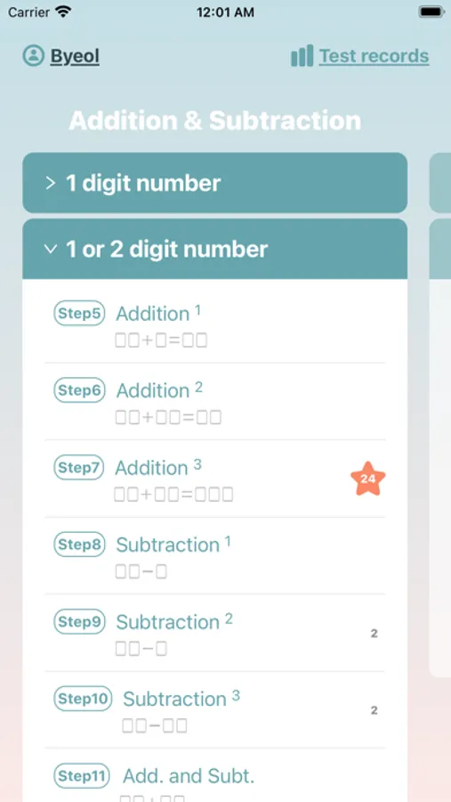 The number of digits are adjusted in each levels and you can choose the level that needs to be practiced.