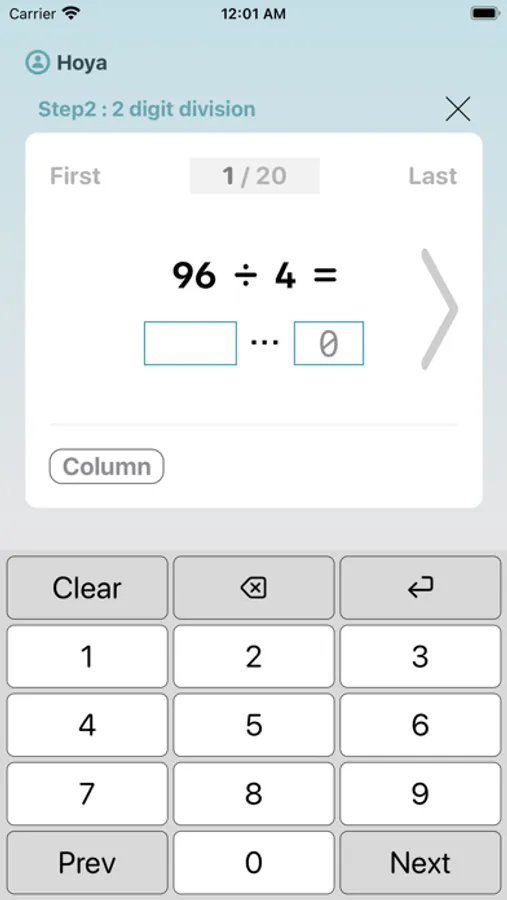 The column method mode let you calculate large numbers in easy way without the need of a pencil and paper.