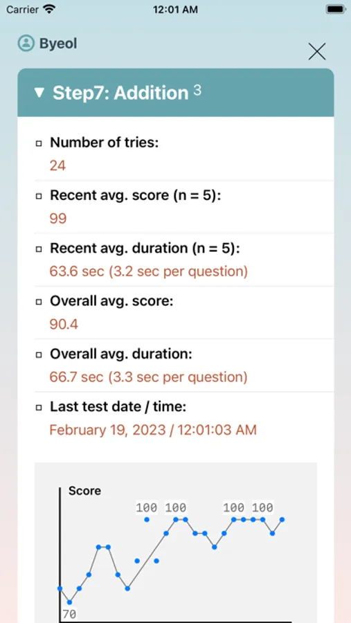 For example you can see you are getting faster and faster on the calculation and getting good grade.