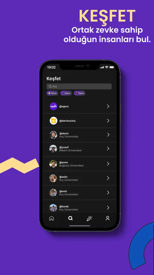 Sosyalleş ve yeni arkadaşlar edin. Agora sayesinde çevreni genişlet ve üniversite hayatına adaptasyonunu hızlandır. Kampüsündeki benzer ilgi alanlarına sahip insanlarla