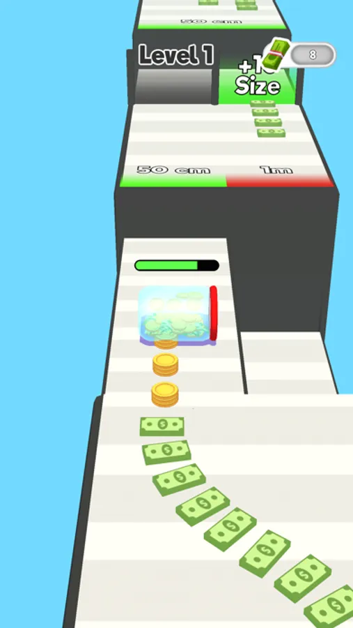 Collect coins through road with bottle, size up and collect more coins. Avoid heights or your bottle will break.