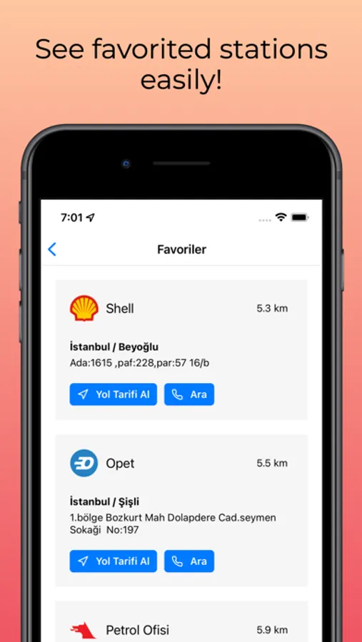 - Get all features of any gas station. (Market, carwash, restaurant, baby care etc.)