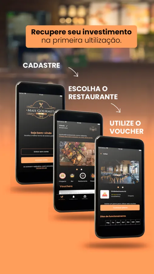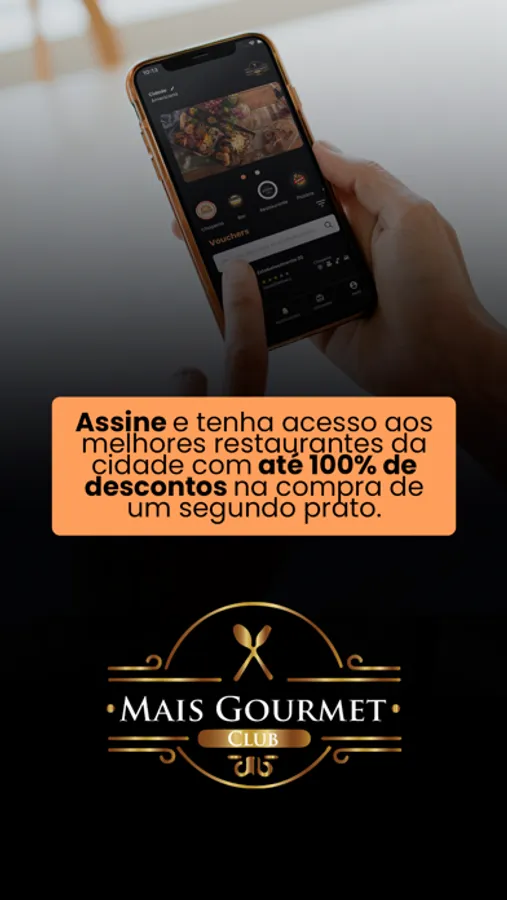 O Mais Gourmet é um aplicativo de assinatura que dá acesso ao um clube de desconto nos melhores restaurantes, onde na compra de um prato você pode ganhar 100% de desconto na compra de segundo prato. São mais de 40 estabelecimentos de diversas categorias como restaurantes, pizzarias, bares, hamburguerias, etc. Escolha o restaurante e conheça novos ambientes, sinta novos sabores e compartilhe com a família e amigos uma experiência saborosa com economia no bolso