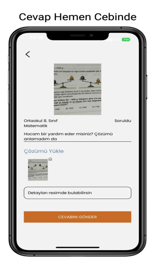 Sevgili Ogrencilerimiz! Sinavlara hazirlandiginiz su donemde yanliz degilsiniz. Aksam odanizda tek basina calisirken bir soruyu cozemediniz mi, ya da anlamadiniz mi? Hemen BulutaSor'u acin. Ilgili sorunun fotografini cekip yukleyin. Sizin icin bekleyen uzmanlarimiz, dakikalar icinde sorunuzu cozecek ve cozum fotografini detaylari ile birlikte size donecekler. Artik zor sorularda yaninizda BulutaSor var