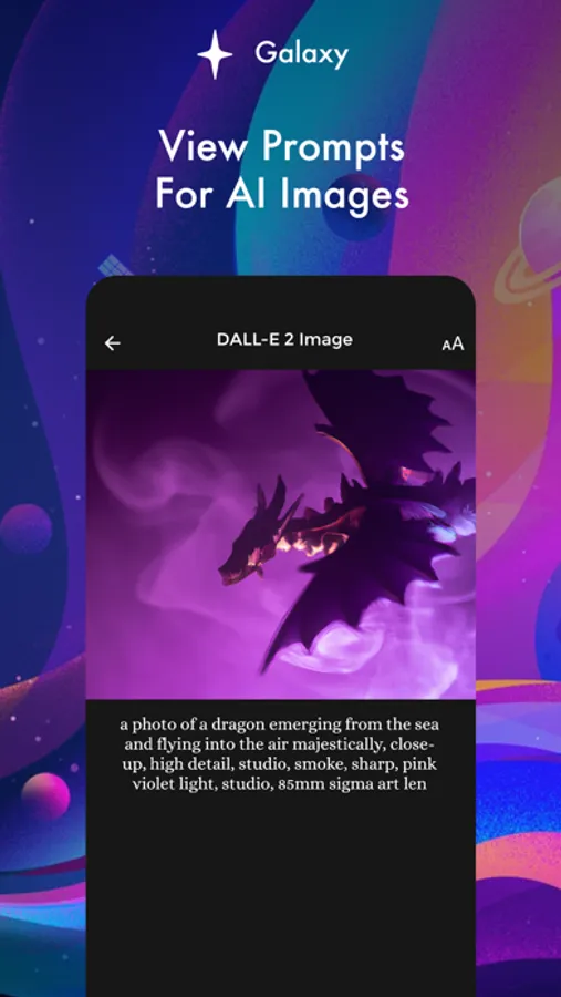 Galaxy lets you generate images with AI, view images from artists around the world, and get ideas for prompts to use in your own art.