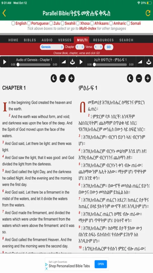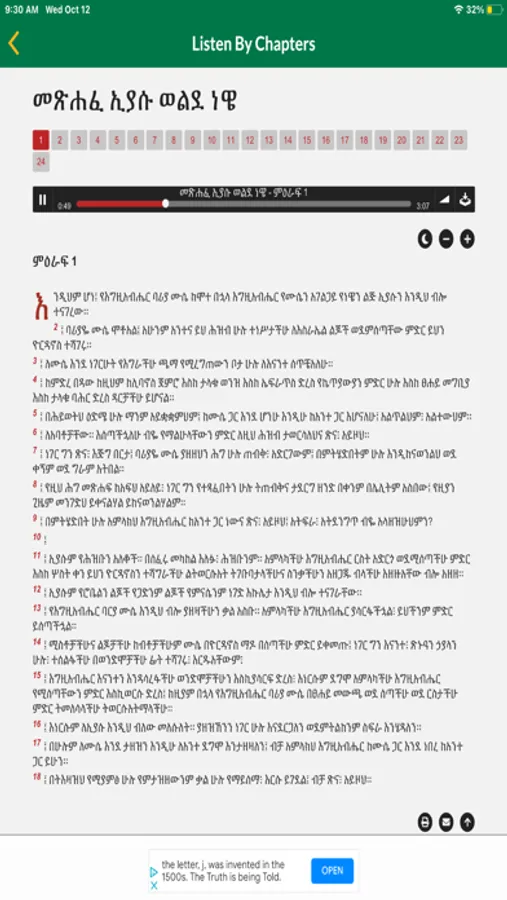 The app includes the complete Amharic Bible audio and ebook. A dramatic reading audio and the ebook Study Bible - Old and New Testament plus many free features.