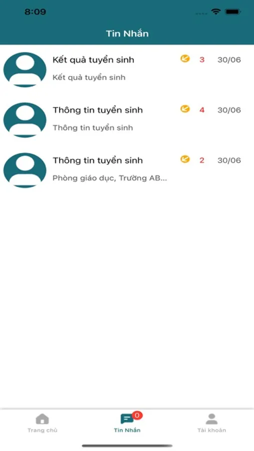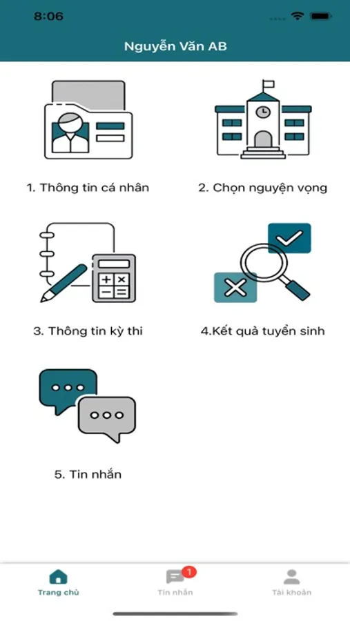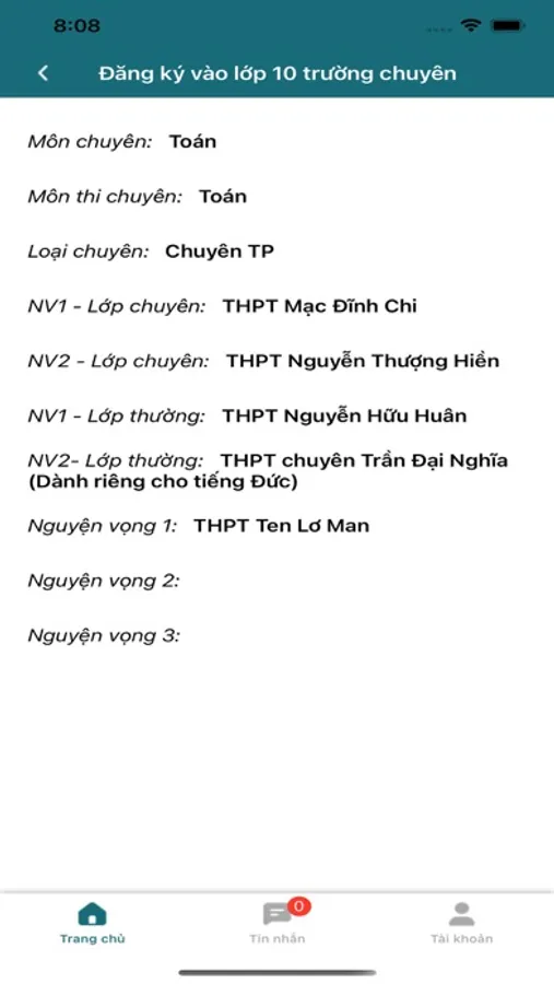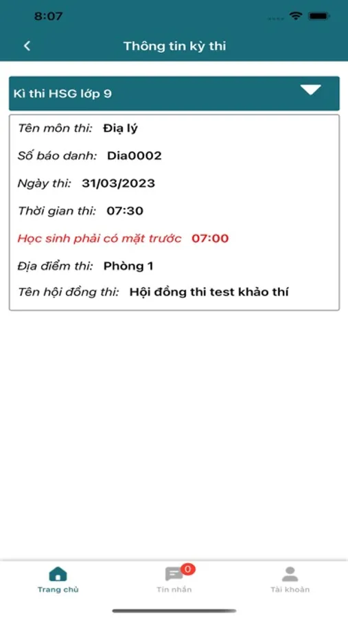 - Xem tin nhắn thông báo về kỳ thi.
