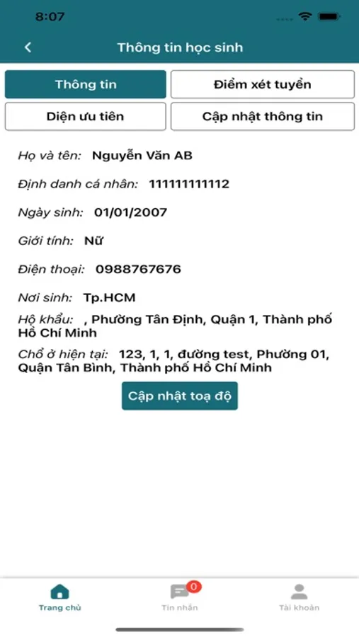 - Xem và cập nhật thông tin cá nhân học sinh.