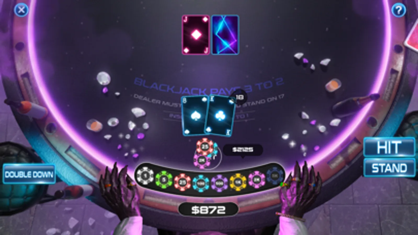 Savvy21 is customised blackjack jack, based on neon theme which you love to play. With Blackjack you now have the famous gambling game always with you. Play Savvy21 like a pro without having to bet real money. Adapt the rules to your favorite casino, train your skills and become a blackjack pro yourself!