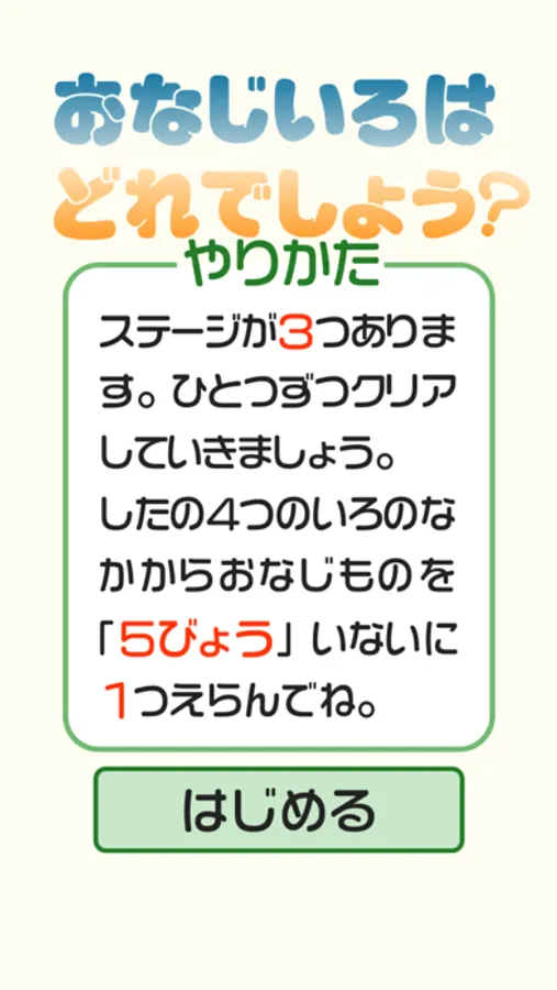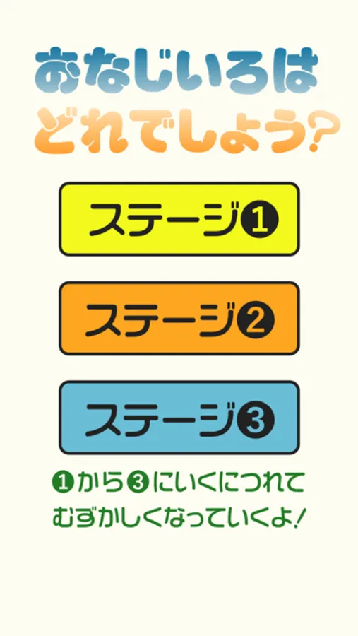 中央画面に表示される色と同じ色を選ぶだけの簡単視覚ゲーム!