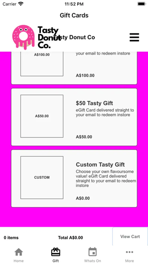 As a member of Tasty Donut Co you will be rewarded with points per dollar spent & bonus points on exclusive items. The more points you earn, the bigger the reward you can redeem on items.