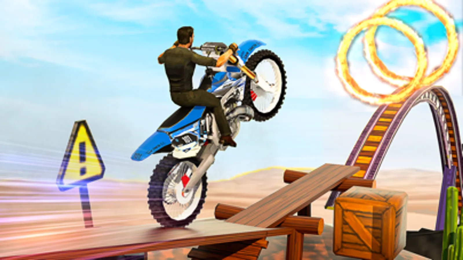 Balance your stunt bike on tracks, rolling circles, and curvy paths. Do all kinds of flips, front and backflip with your bike in stunt games. Don’t be off track even for a split second otherwise you may fall from the track in bike stunt 3d. Motorcycle stunt game is filled with challenging stunt drive and thrill. Challenging motocross bike games to show your dirtbike racing game. This motocross games have various stunt riding levels. Beat your opponent player and show your motocross dirt bike mad skills. Pass through hard paths as your motocross stunt games is full of obstacles, hard paths, containers, and hurdles.