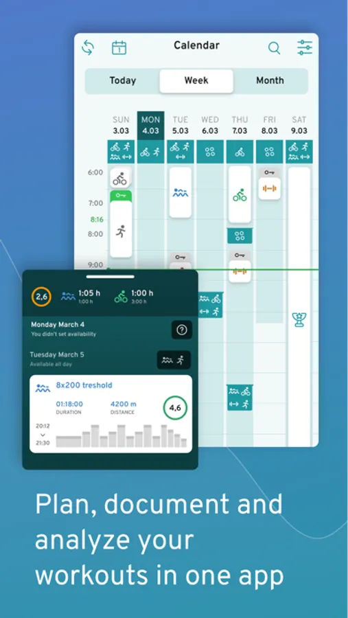 1. Calendar - plan, track and monitor your training in a central log. Upload files manually or synchronize with your favorite sports tracker. Add events and availibility to your calendar, plan ahead with local weather data, or invite a coach to your calendar