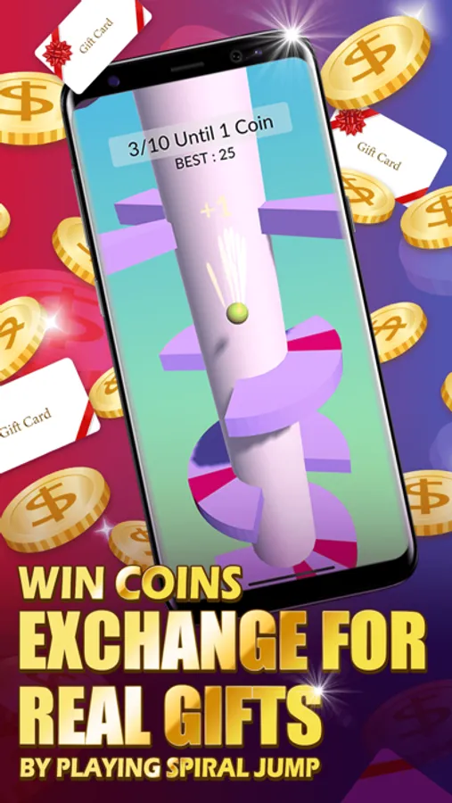 Spiral Jump is a relaxing casual game that users can enjoy anytime while earning cash rewards. By spinning the tower and guiding the ball through, you can survive as long as possible to earn more coins and have a chance at winning wonderful cash prizes. With its simple yet exciting gameplay and rewarding experience, it's a great choice for killing time and earning pocket money in your free time. You can enjoy quick gaming sessions and receive payback completely for free.