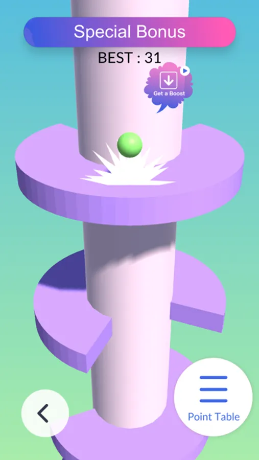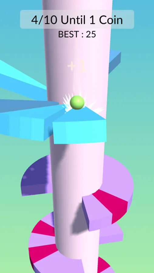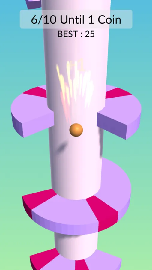 - Spin the tower to guide the ball and make it fall onto the lilac board while avoiding the purple board. Falling onto the purple board will result in a game over.