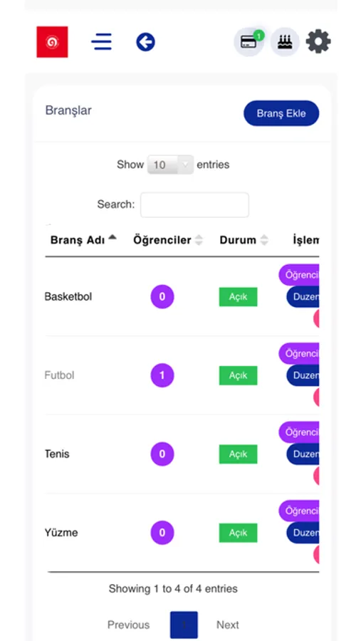 Antrenörler ise antreman programları oluşturabilirler, dersler için yoklama alabilir.