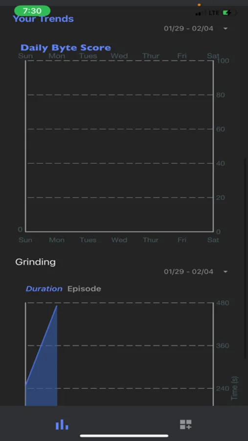 This app pairs with your byteSense device to deliver real-time insights on your night-time oral activity.