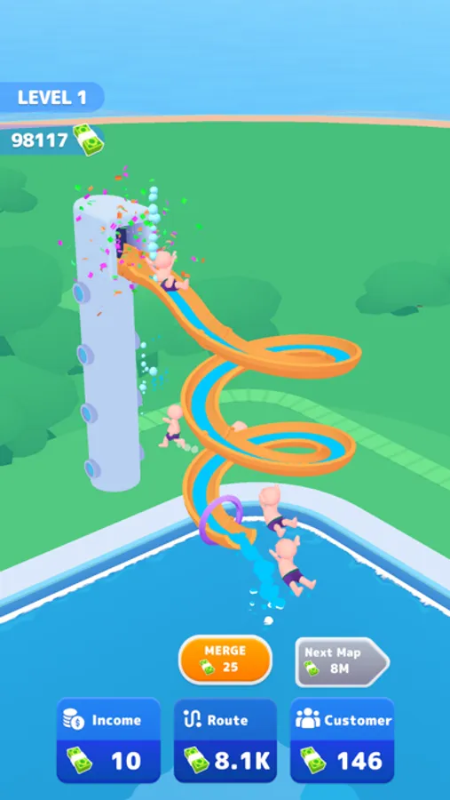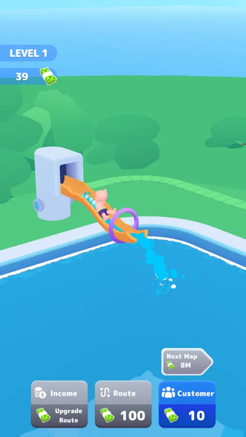 Have you ever wanted to run your own aquapark? Come and take care of your business. Earn money, buy new water slides and rise!