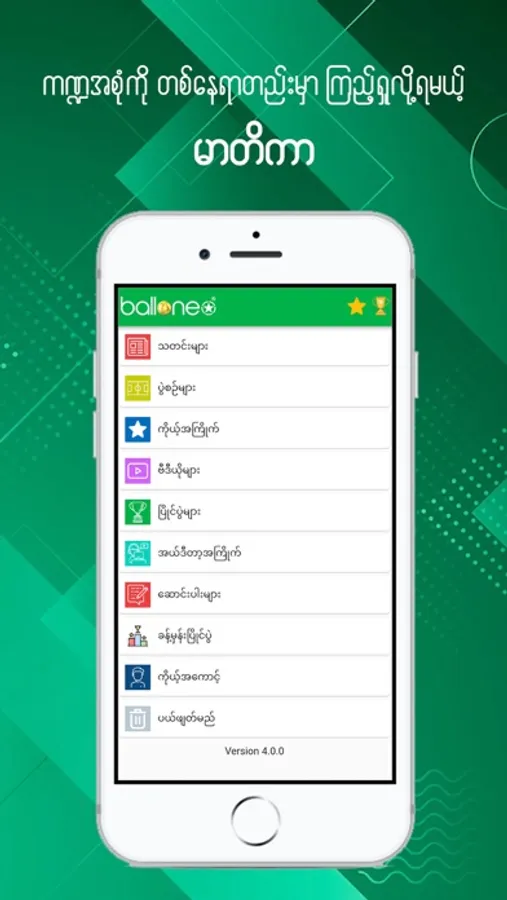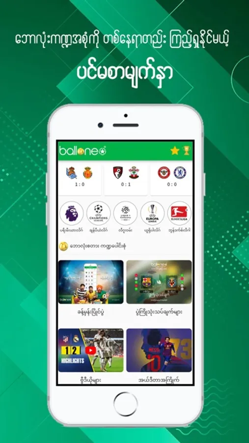 The Ballone Star @ Football Star is the mobile football app in Myanmar. Ballone Star is the best Football App for up to date with all the latest football news, live scores, results, transfers and more from your favorite team and all other clubs around the world.