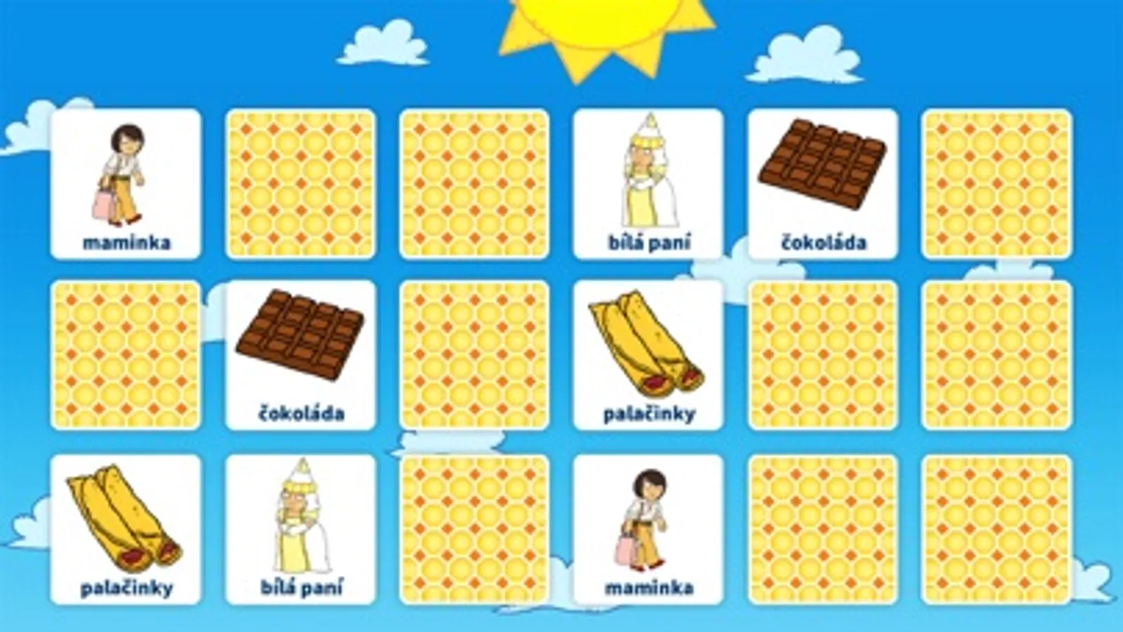 Karetní hra zaměřená na paměť a soustředění. Hra obsahuje 9 shodných párů obrázků, které je třeba najít.