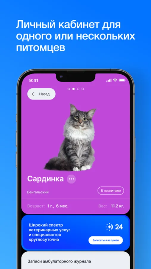 • База знаний и обратная связь. Изучайте материалы по уходу за животными и их лечению, получайте ответы на вопросы от специалистов клиники.