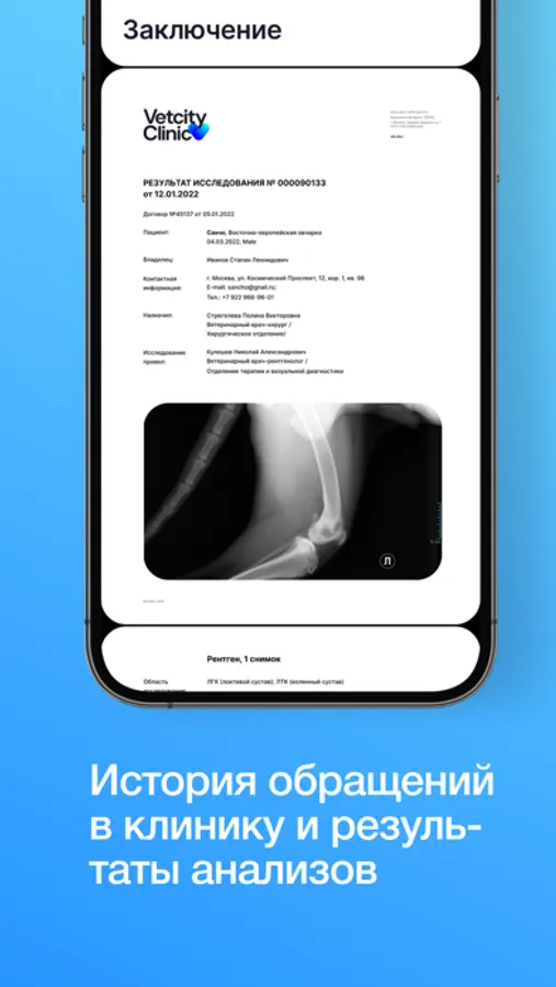 • Отслеживайте назначения, историю лечения и результаты анализов. Личный кабинет для одного или нескольких питомцев позволит иметь под рукой результаты анализов, историю лечения и обращений.