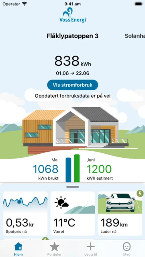 Last ned Voss Energi-appen og få kontroll og oversikt over ditt strømforbruk. Med appen kan du lade elbilen når strømmen er billigst, koble opp smarte produkter og se hvilke utslag årstid, vær, helger og ferier har på strømforbruket ditt.