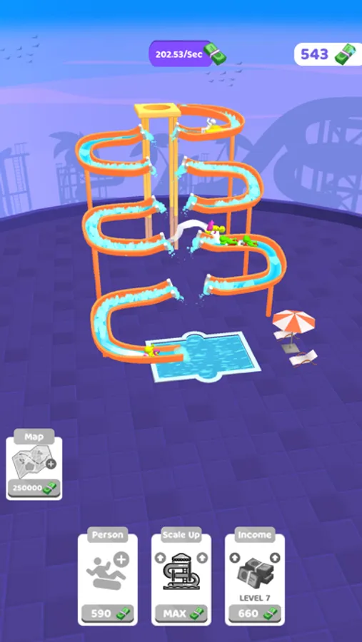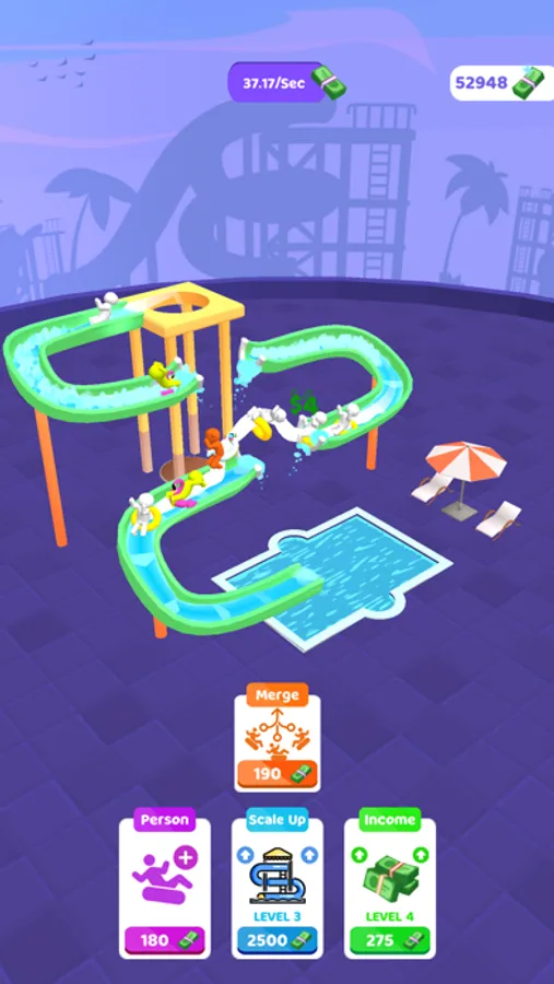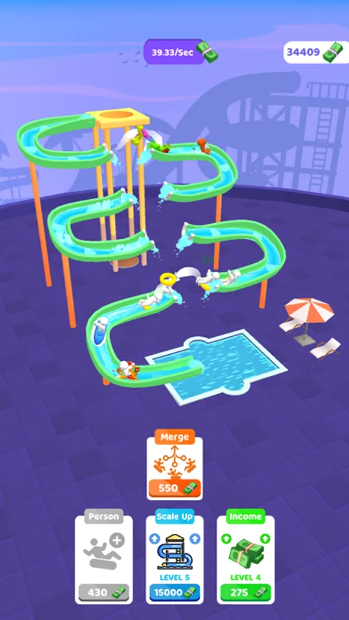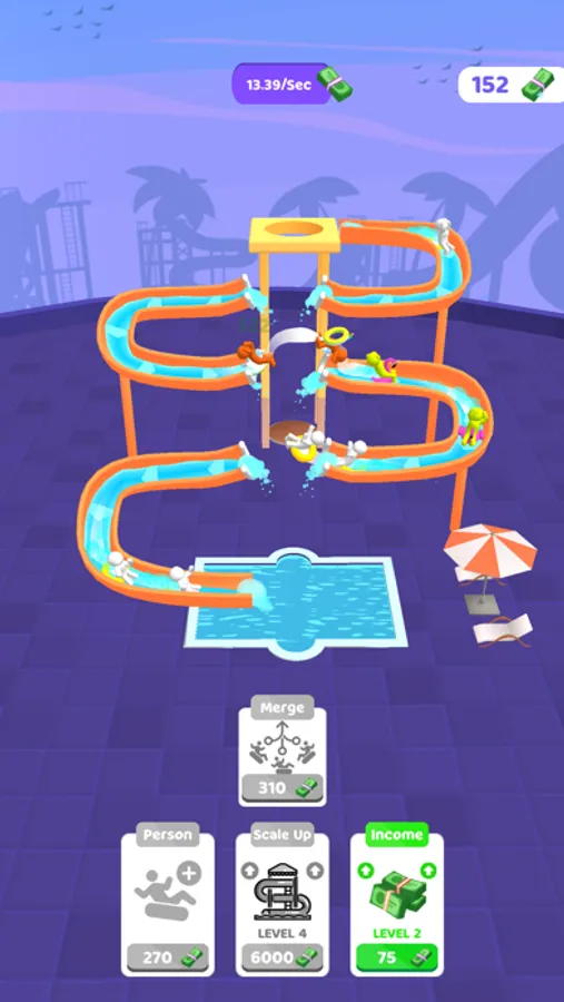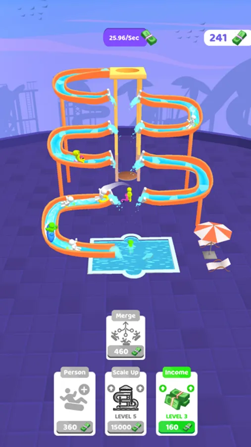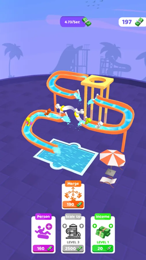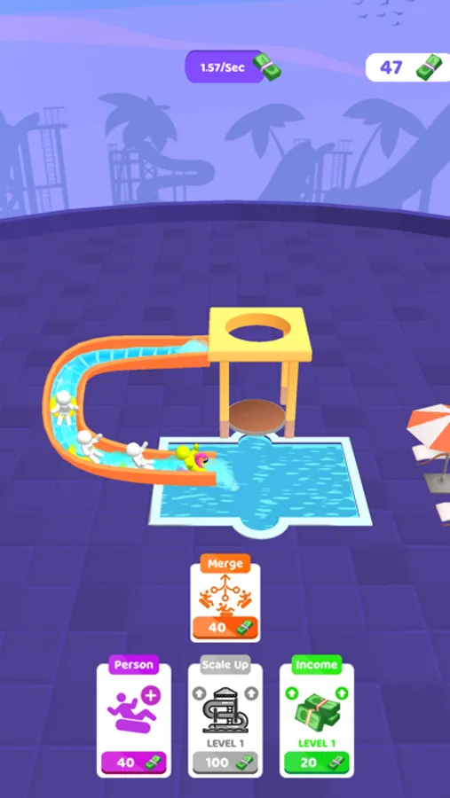 Tap to make them faster! There are jumping points to earn more money! You can youse your money to improve the money that you earn in 1 second by adding new characters, merging them and scaling up the park, and enhancing the income itself!