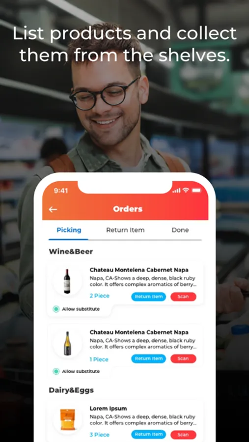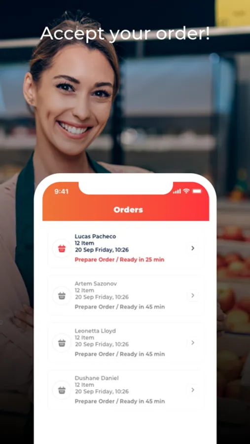 Once accepted, a task card will appear for each order so you can see a clear overview as well as estimated pickup times. While preparing an order, you can track your progress and mark possible missing items.