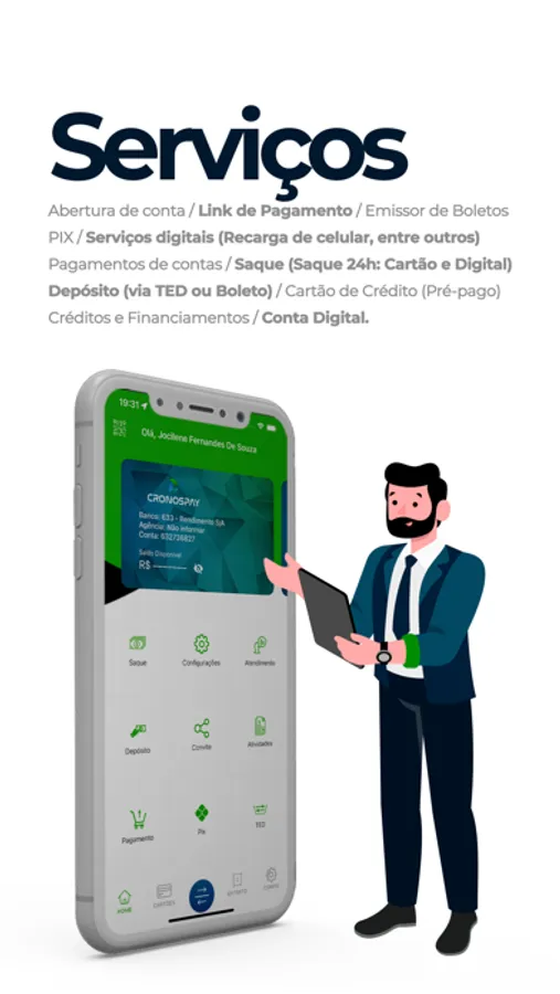 "Abra sua conta digital no Cronos Pay. Evoluímos cada vez mais para que você tenha a melhor experiência, O Cronos Pay oferece uma conta corrente completa e totalmente gratuita!
