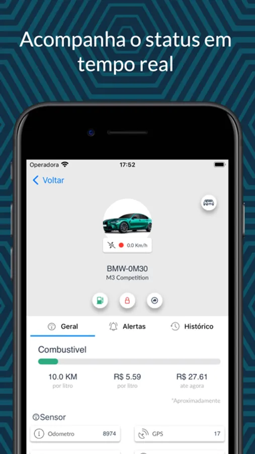 Com o aplicativo você terá seu carro na palma de sua mão, com mais segurança e confiabilidade, podendo acessar dados dele a qualquer hora e em tempo real.